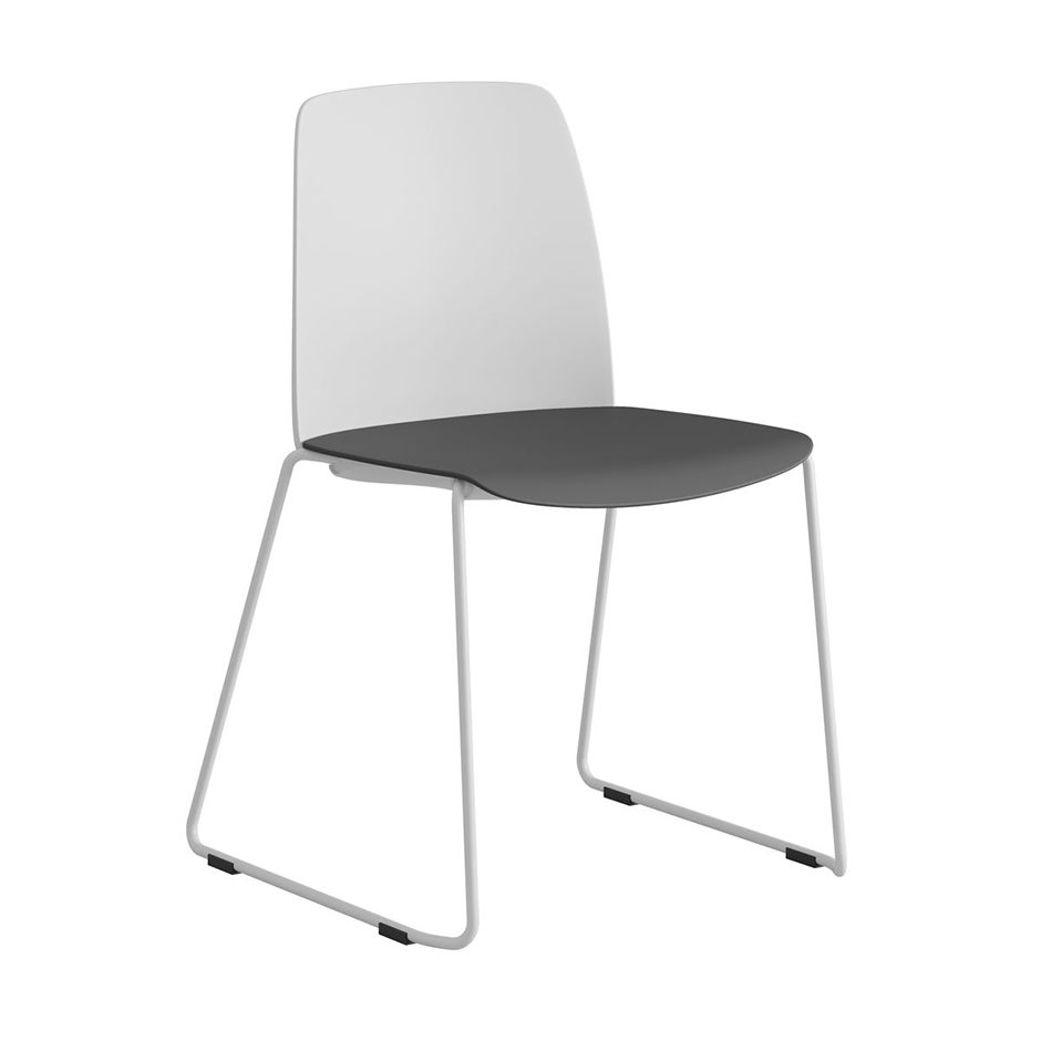 Stol Choice med medar, vit plastrygg, mörkgrå plastsits, vitt stativ