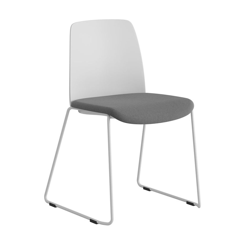 Stol Choice med medar, vit plastrygg, mörkgrå tygklädd sits, vitt stativ