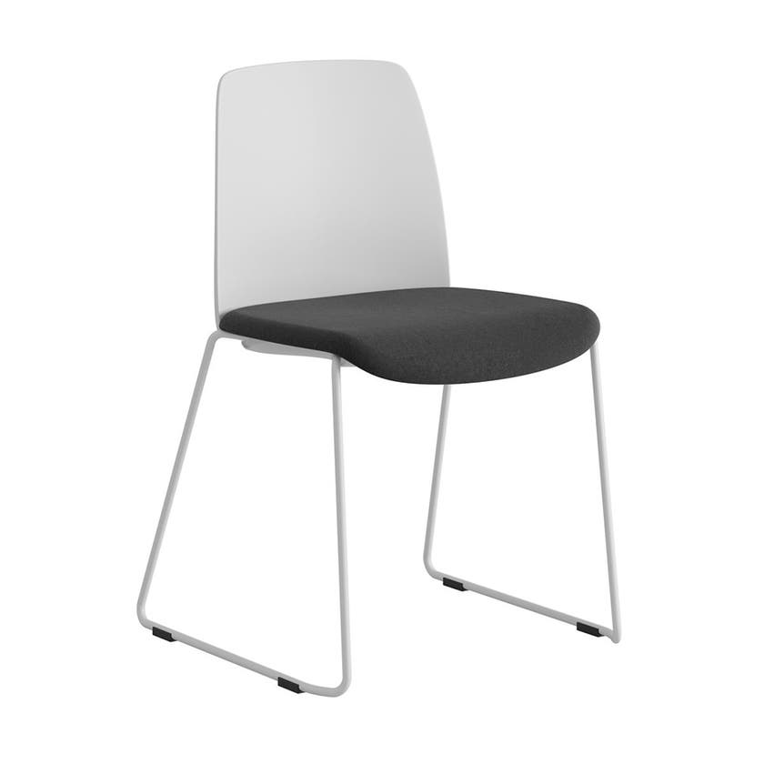 Stol Choice med medar, vit plastrygg, svart tygklädd sits, vitt stativ