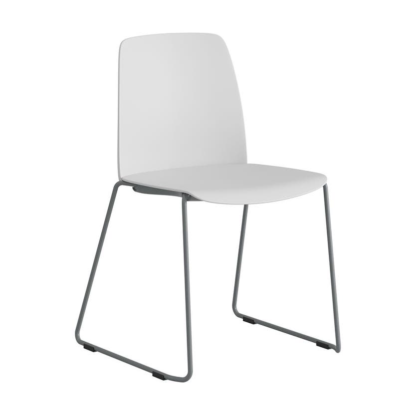 Stol Choice med medar, vit plastrygg, vit plastsits, silvergrått stativ