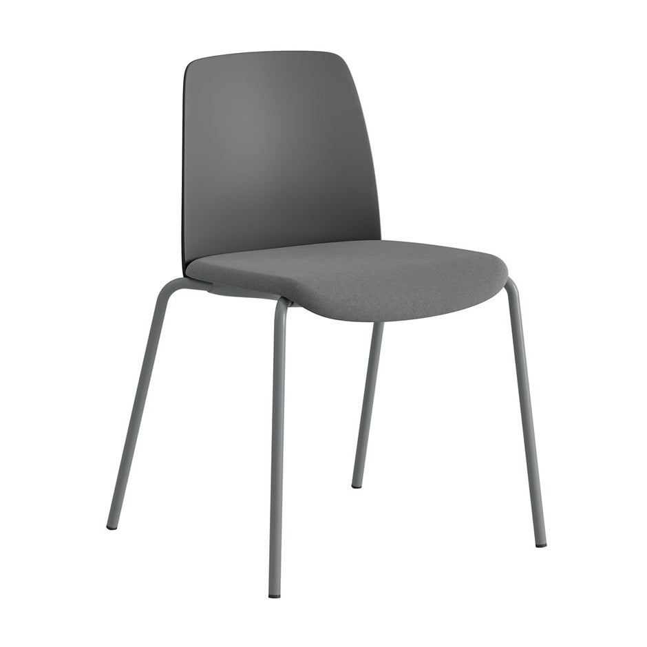 Stol Choice, mörkgrå plastrygg, mörkgrå tygklädd sits, silvergrått stativ