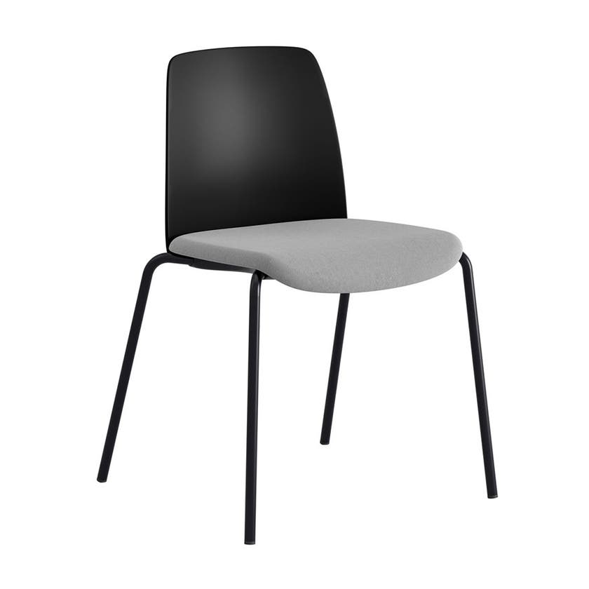 Stol Choice, svart plastrygg, ljusgrå tygklädd sits, svart stativ
