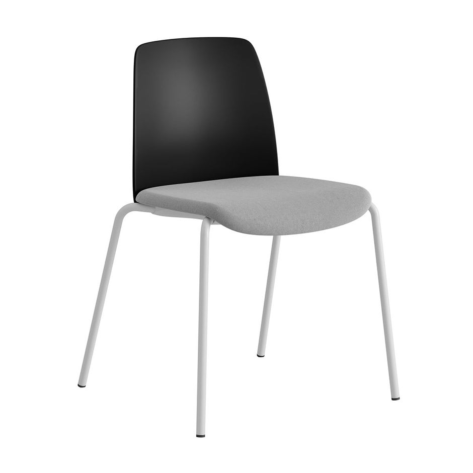 Stol Choice, svart plastrygg, ljusgrå tygklädd sits, vitt stativ