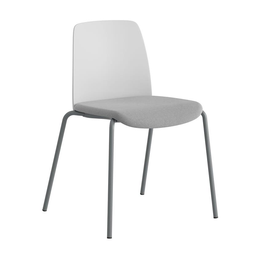 Stol Choice, vit plastrygg, ljusgrå tygklädd sits, silvergrått stativ