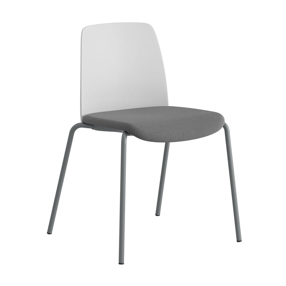 Stol Choice, vit plastrygg, mörkgrå tygklädd sits, silvergrått stativ