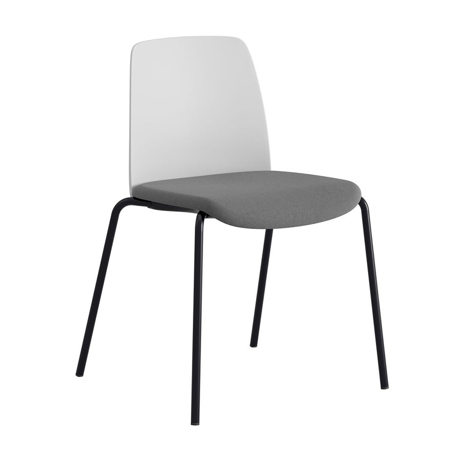 Stol Choice, vit plastrygg, mörkgrå tygklädd sits, svart stativ