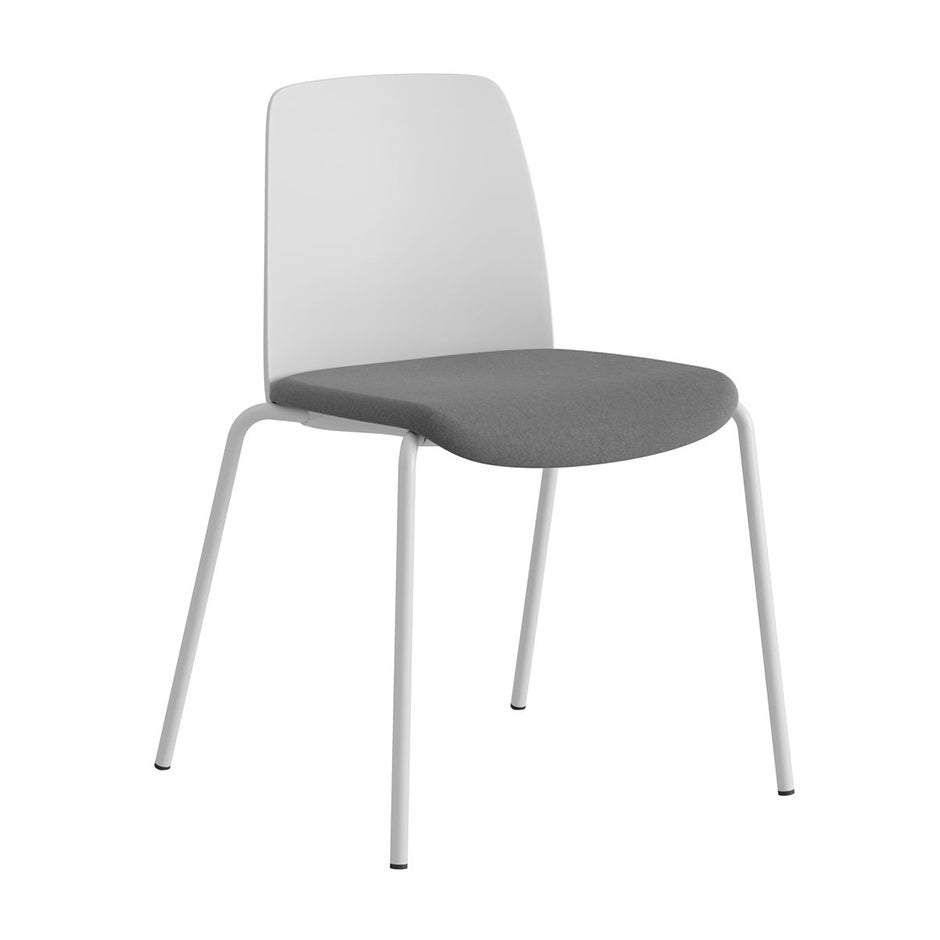Stol Choice, vit plastrygg, mörkgrå tygklädd sits, vitt stativ