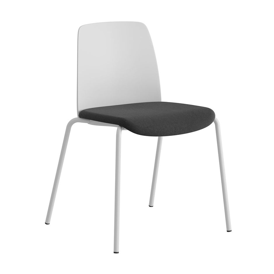 Stol Choice, vit plastrygg, svart tygklädd sits, vitt stativ