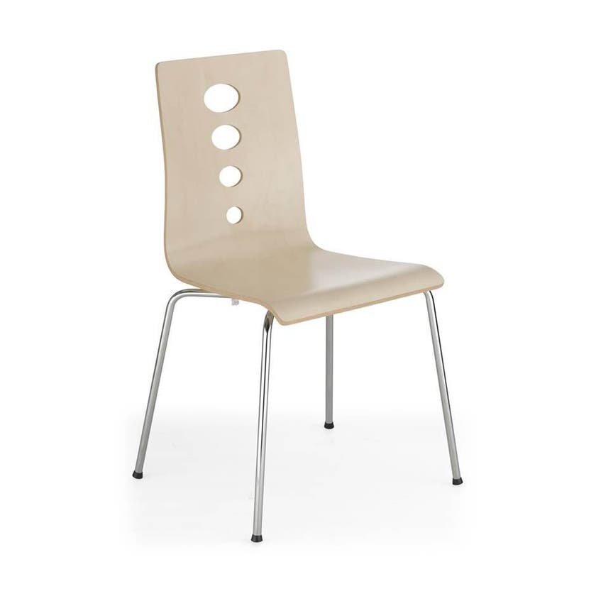 Sittskal i fanérad plywood, välj mellan natur bok alternativt betsat i wenge eller orange. Grålackerat metallunderrede. Staplingsbar.