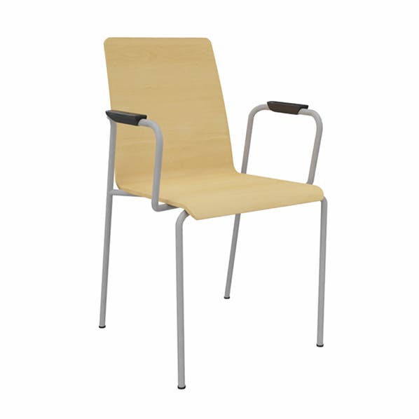Stol Moon med 4 ben och armstöd, Sittskal Bok Fanér, sitthöjd 465 mm
