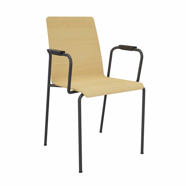 Stol Moon med 4 ben och armstöd, Sittskal Bok Fanér, sitthöjd 465 mm
