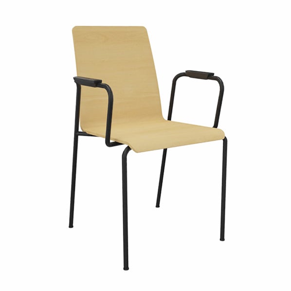 Stol Moon med 4 ben och armstöd, Sittskal Bok Fanér, sitthöjd 465 mm