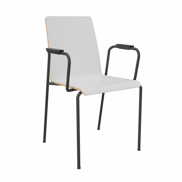 Stol Moon med 4 ben och armstöd, Sittskal Vit laminat, sitthöjd 465 mm