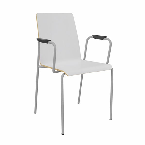 Stol Moon med 4 ben och armstöd, Sittskal Vit laminat, sitthöjd 465 mm