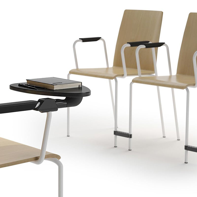 Stolen har armstöd med möjlighet att utrusta med skrivplatta och/eller kopplingsbeslag.