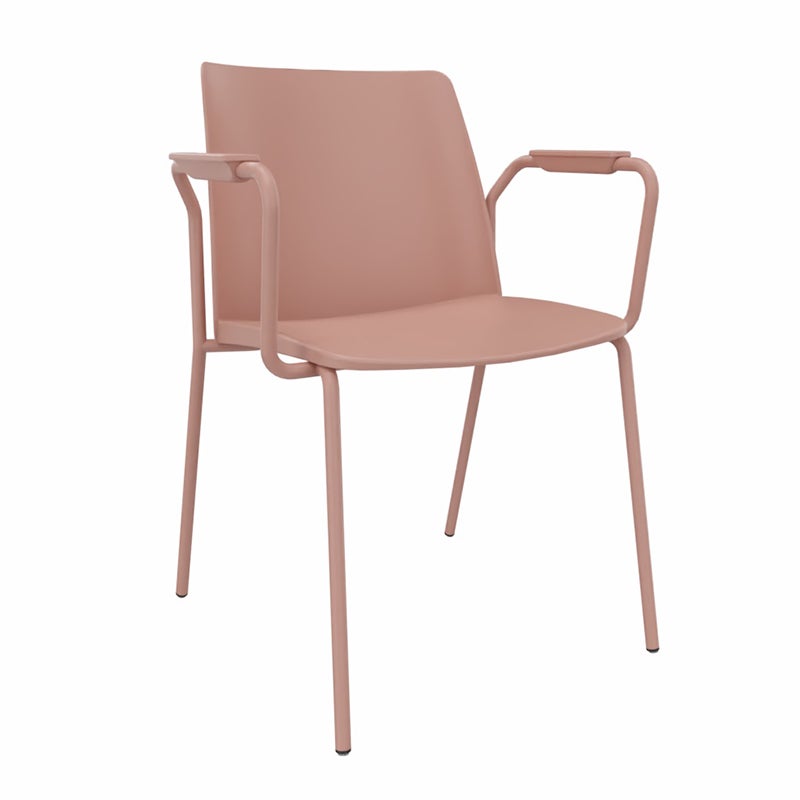 Stol Polytone L med armstöd, sittskal i plast och lackerade stålben, sitthöjd 440 mm