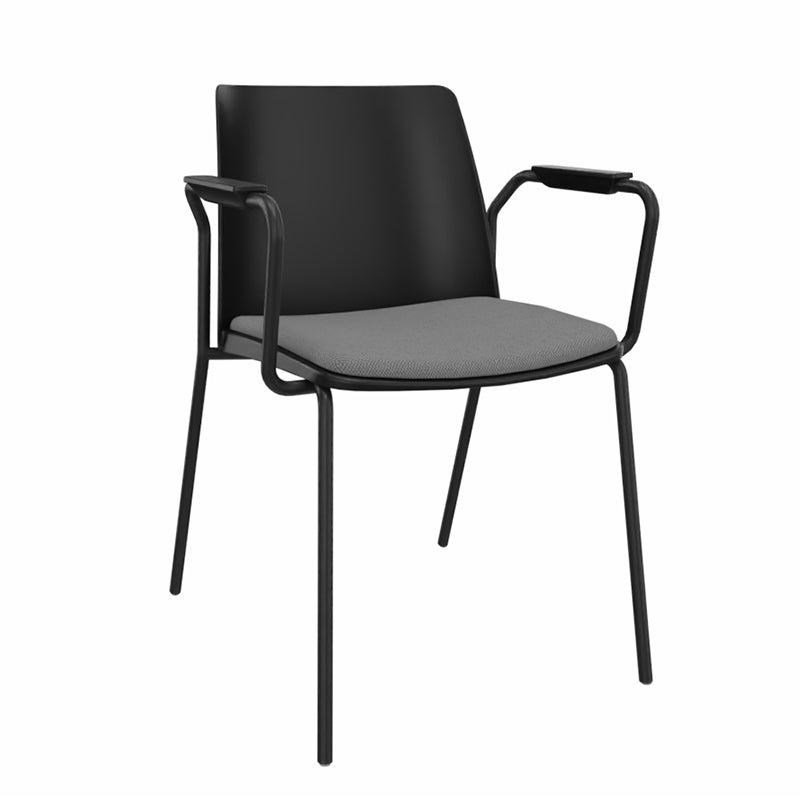 Sitsen har beklädnad i tyg Era (100.000 Martindale) i mörkgrå färg. Gör stolen extra bekväm vid längre sessioner. Det mjukt formade sittskalet är tillverkat av premium-klass polyproylen, skalet är därav extremt tåligt och enkelt att hålla rent. Staplingsbar sex stolar i höjd.