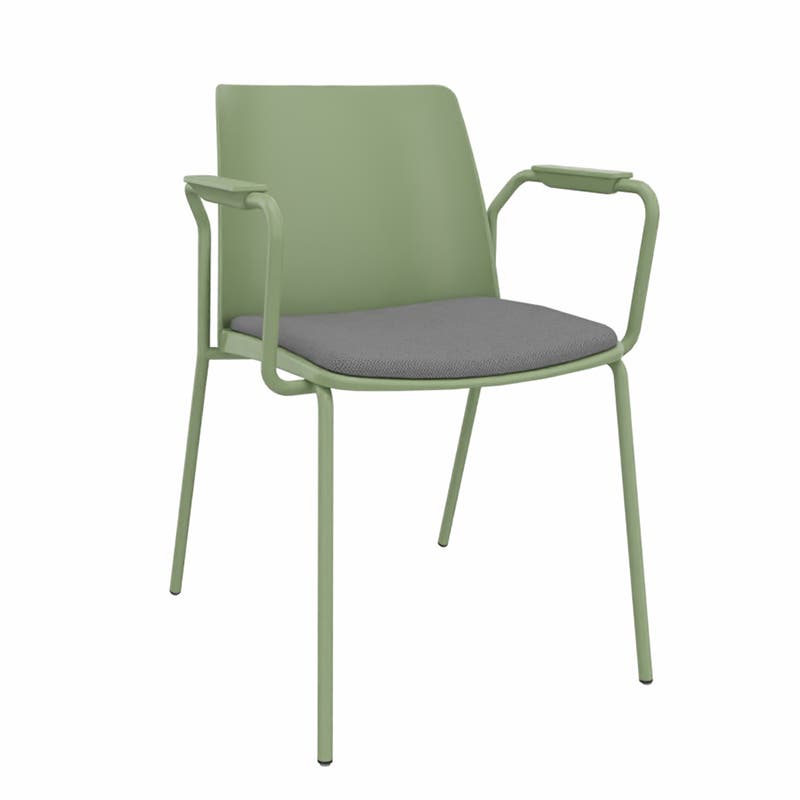 Sitsen har beklädnad i tyg Era (100.000 Martindale) i mörkgrå färg. Gör stolen extra bekväm vid längre sessioner. Det mjukt formade sittskalet är tillverkat av premium-klass polyproylen, skalet är därav extremt tåligt och enkelt att hålla rent. Staplingsbar sex stolar i höjd.