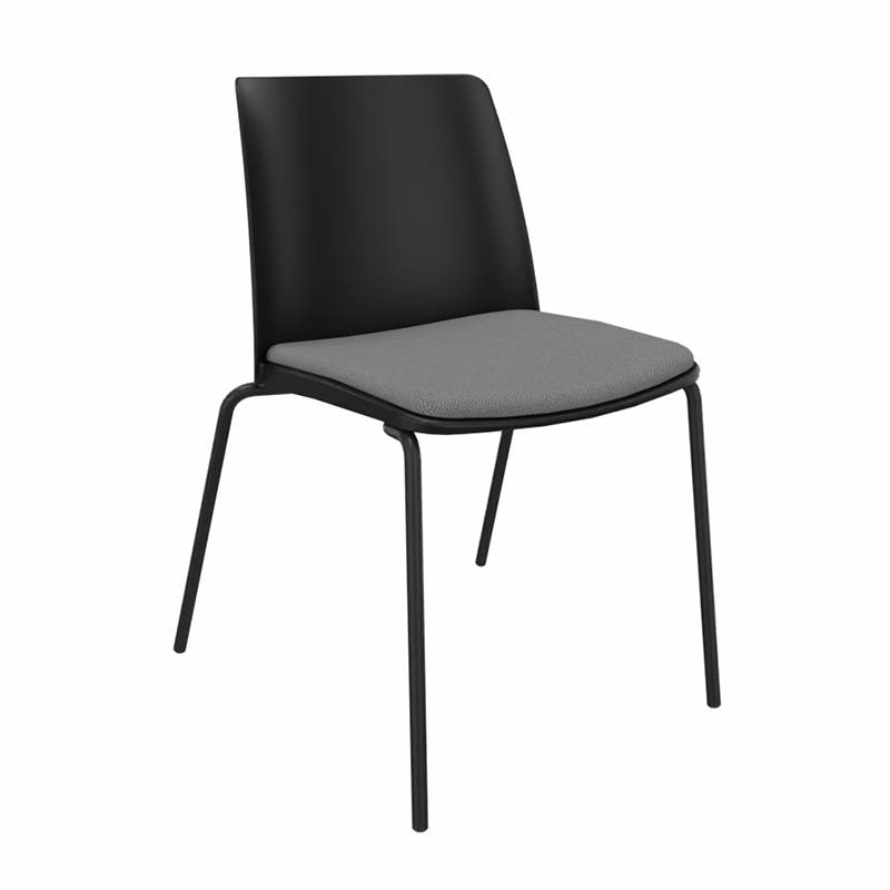 Sitsen har beklädnad i tyg Era (100.000 Martindale) i mörkgrå färg. Gör stolen extra bekväm vid längre sessioner. Det mjukt formade sittskalet är tillverkat av premium-klass polyproylen, skalet är därav extremt tåligt och enkelt att hålla rent. Staplingsbar sex stolar i höjd.