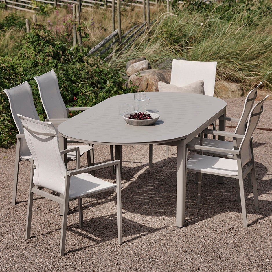 Ett aluminiumbord med extra allt - matbordet Lomma samlar det bästa av det bästa. Skandinavisk design, förstklassig funktionalitet och generös storlek. Utrustat med butterfly-funktion där bordsskivan snabbt vrids fram och gör det lätt att anpassa ytan för antalet personer i sällskapet.