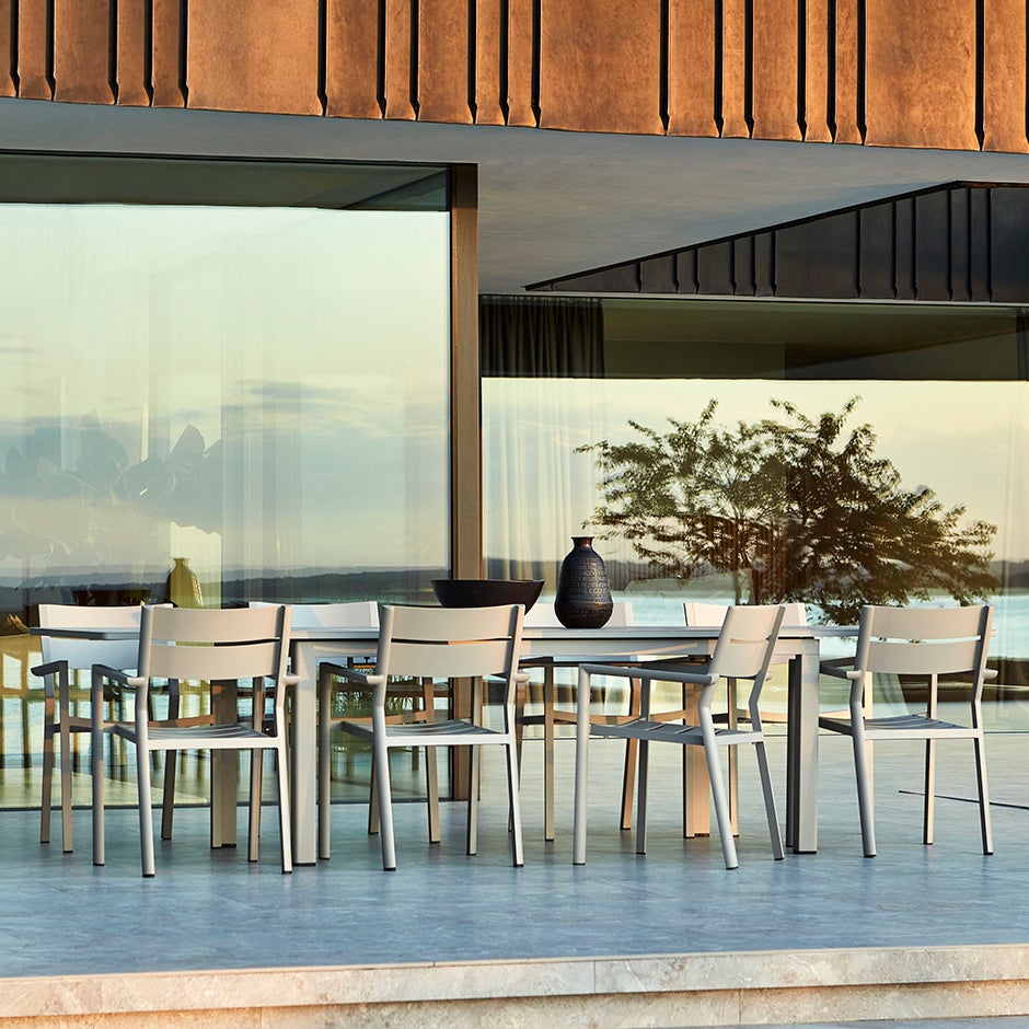 Ett aluminiumbord med extra allt - matbordet Lomma samlar det bästa av det bästa. Skandinavisk design, förstklassig funktionalitet och generös storlek. Utrustat med butterfly-funktion där bordsskivan snabbt vrids fram och gör det lätt att anpassa ytan för antalet personer i sällskapet.