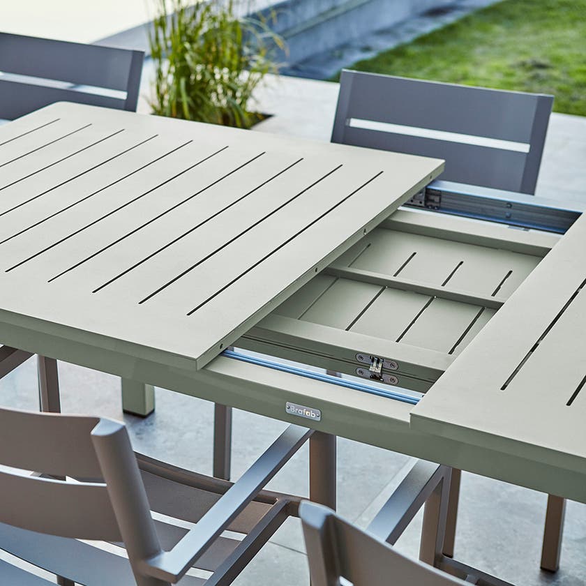 Ett aluminiumbord med extra allt - matbordet Lomma samlar det bästa av det bästa. Skandinavisk design, förstklassig funktionalitet och generös storlek. Utrustat med butterfly-funktion där bordsskivan snabbt vrids fram och gör det lätt att anpassa ytan för antalet personer i sällskapet.