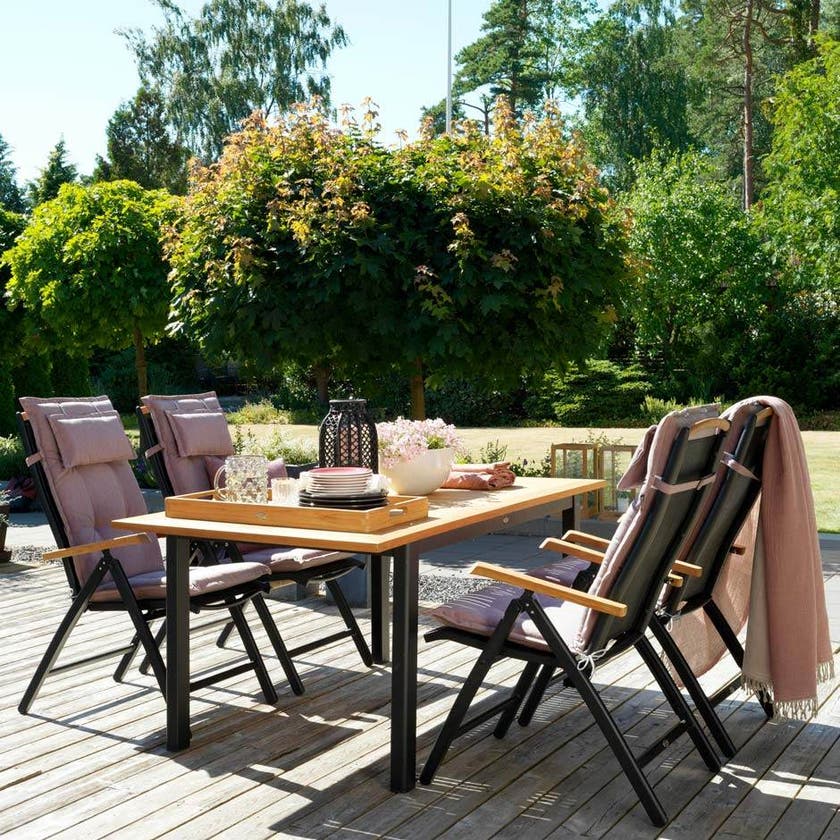 Utebord Lyon, med butterflyskiva, L1520/2100 x B920 x H760 mm, Teak med svart aluminiumstomme