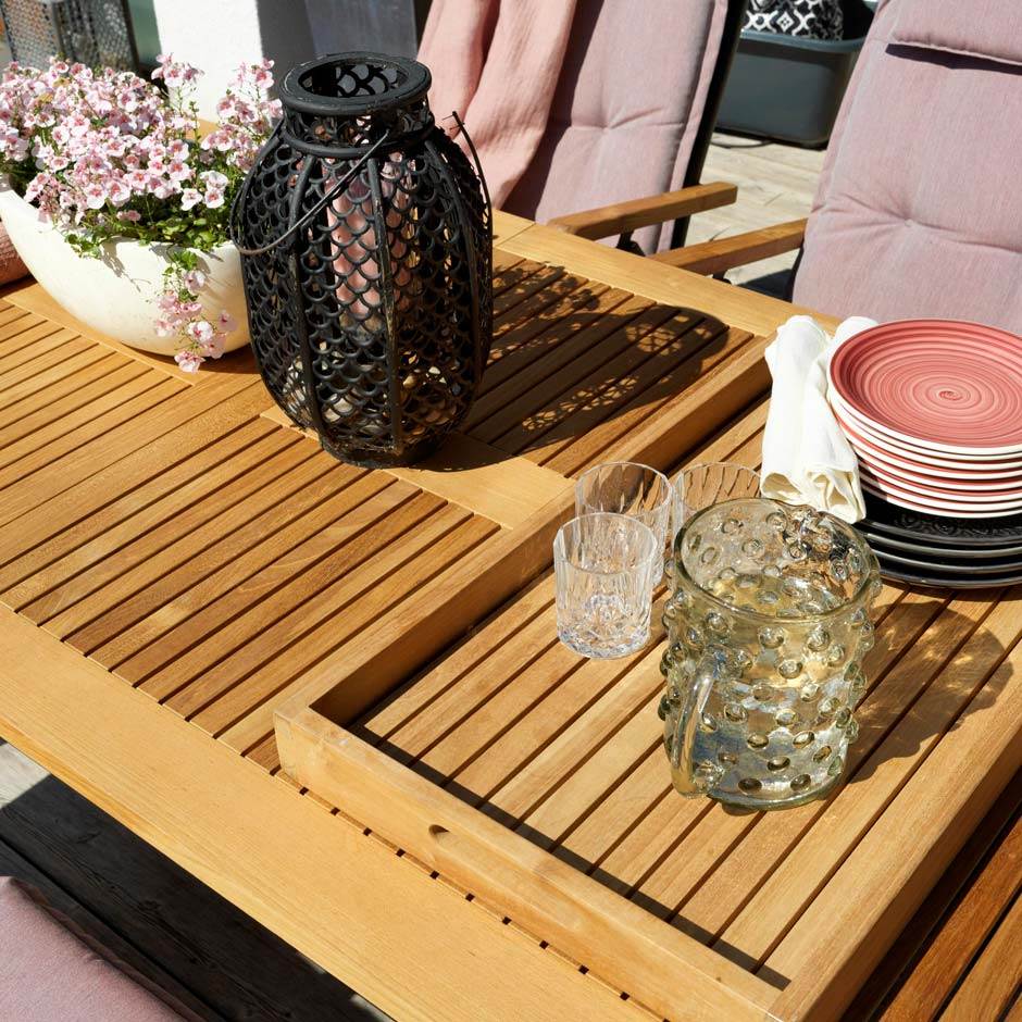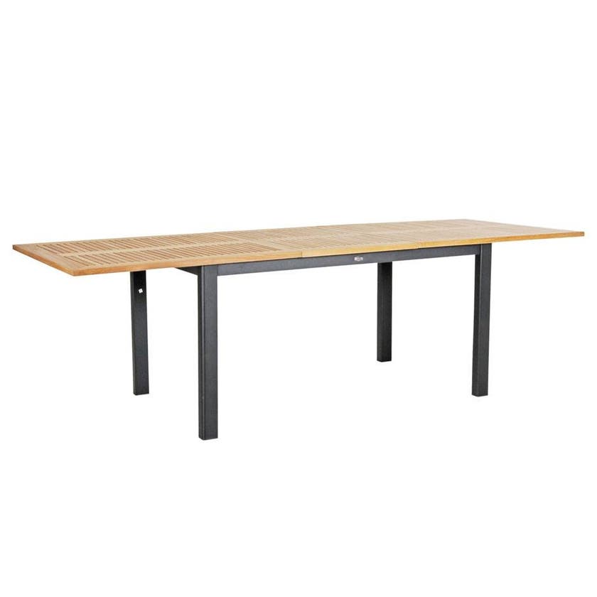 Utebord Lyon, med butterflyskiva, L1940/2520 x B920 x H760 mm, Teak med svart aluminiumstomme