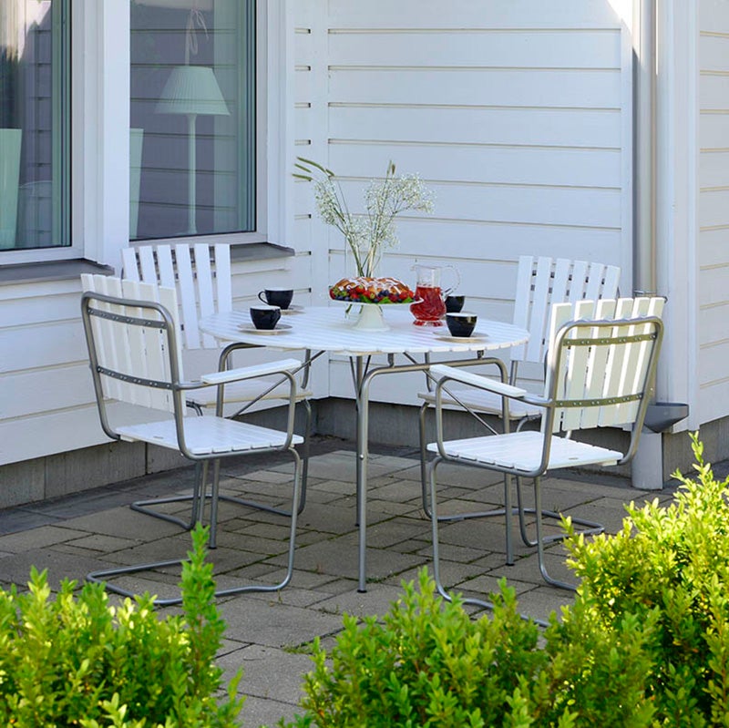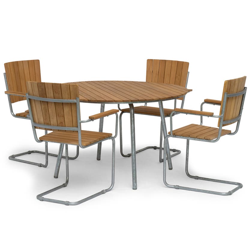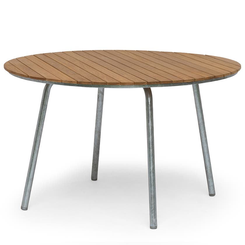 Bordet Sandhamn är en riktig svensk klassiker, här i modernt utförande med stålställning i varmgalvaniserad och trädetaljer i obehandlad, FSC-certifierad teak. Teak är ett hållbart materialval som med tiden åldras och ger en silvergrå patina som gör bordet vackrare för varje år som går.