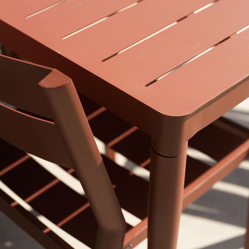 Storstadskänsla och sommar - med eleganta linjer och genomtänkta detaljer kombinerar Bigby det bästa av skandinavisk design. Skapad i tåligt aluminium med läckra detaljer som de avsmalnande benen och den stilrena bordsskivan med ribbor. Somrig färgsättning ger det extra lyftet för känslan.