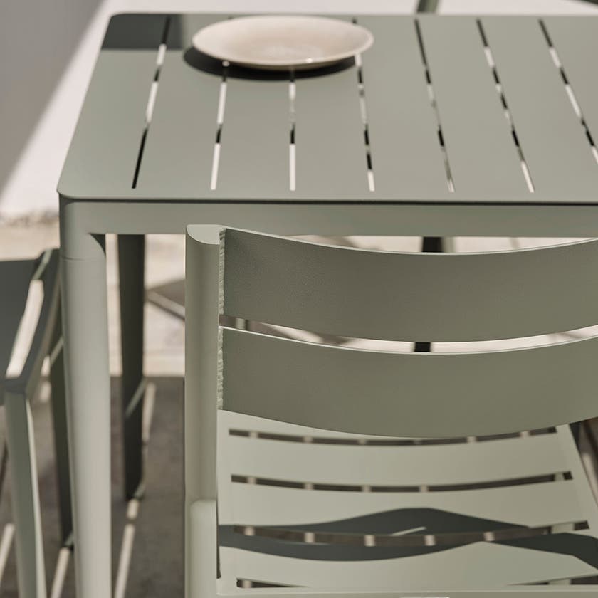 Storstadskänsla och sommar - med eleganta linjer och genomtänkta detaljer kombinerar Bigby det bästa av skandinavisk design. Skapad i tåligt aluminium med läckra detaljer som de avsmalnande benen och den stilrena bordsskivan med ribbor. Somrig färgsättning ger det extra lyftet för känslan.