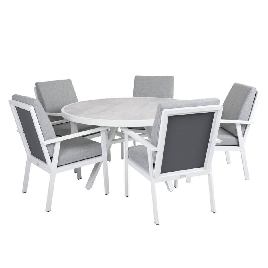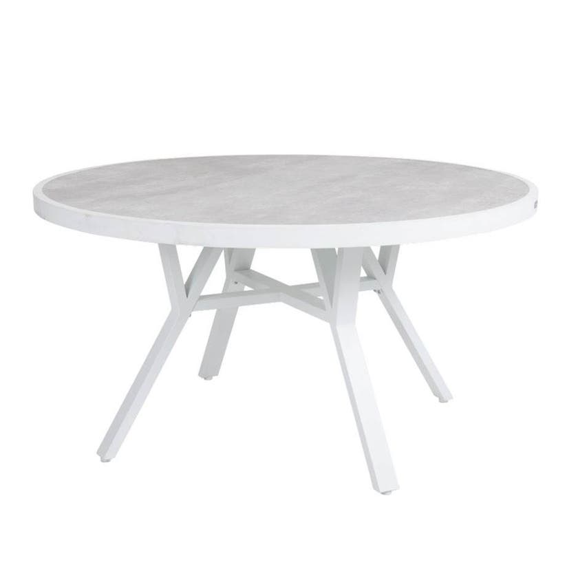 Utebord Samvaro Dining, runt Ø1400 x H730 mm, glasskiva med betongmönster, vit aluminiumstomme