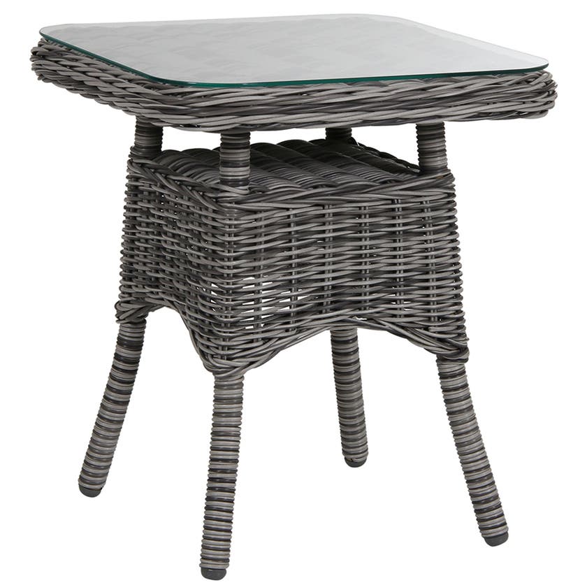 Smidigt sidobord med glasskiva i vår utemöbelserie Rosita. Serien Rosita är en komplett samling utemöbler för härliga sommarstunder. Rosita utmärks av sina mjuka former och sin generösa sittkomfort. Välj mellan sköna fåtöljer som du kompletterar med fotpall, bord i olika storlekar och en soffa som det är skönt att krypa upp i. Stativ i konstrotting så naturtrogen att den lätt förväxlas med äkta vara - men det är ju knappast en nackdel.