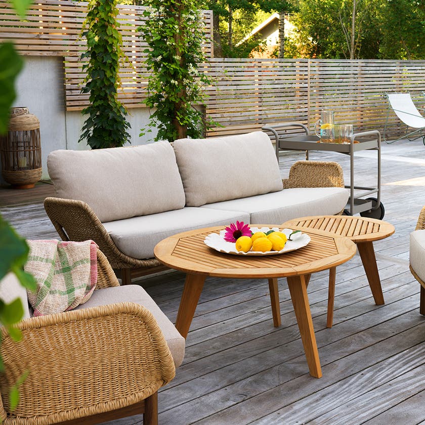 Kastos är ett flexibelt och modernt bord som passar utmärkt såväl på uteplatsen som inomhus. Vacker design i tålig, naturell teak somt gör sig väl tillsammans med de flesta soffgrupper.