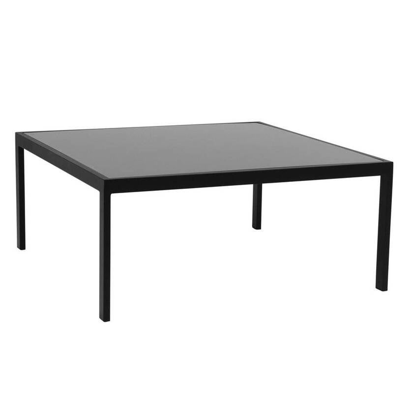 Soffbord Leone, med glasskiva, L900 x D900 x H400 mm, svart aluminiumstomme