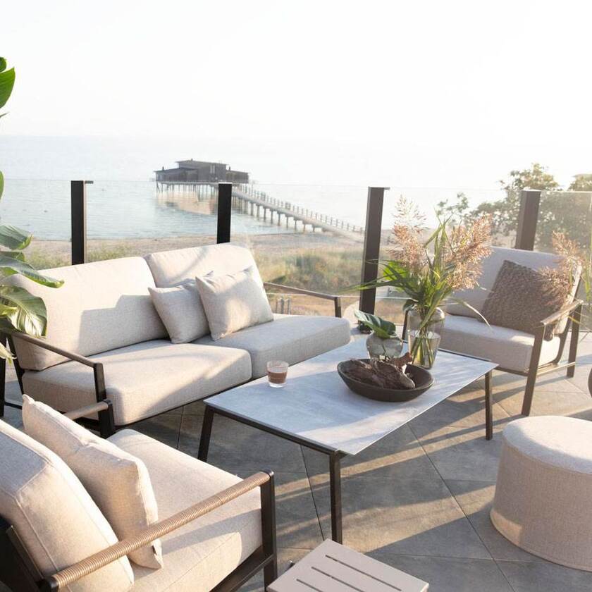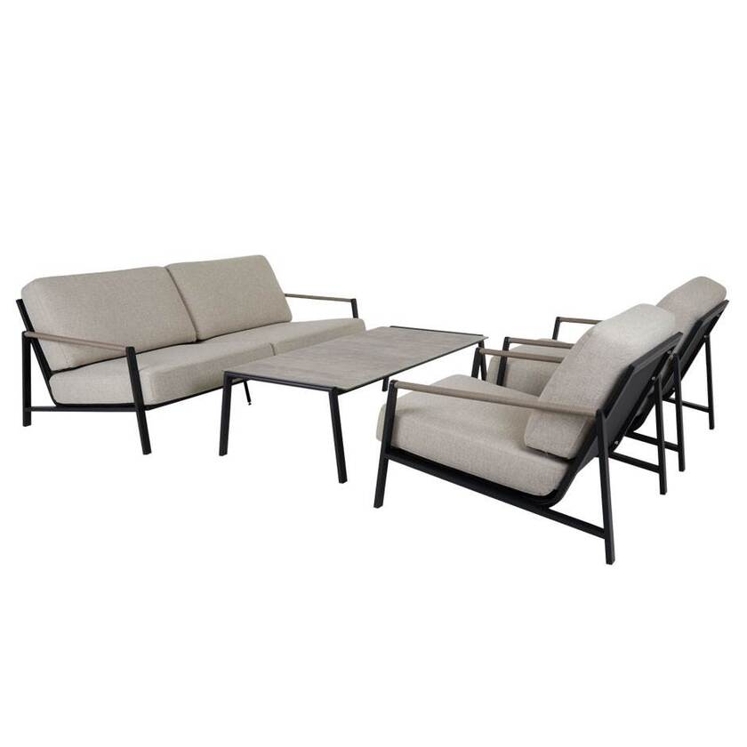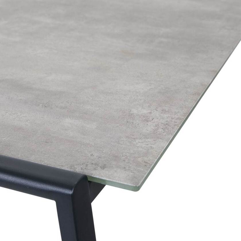 Stilrent bord som kompletterar de övriga delarna i Lyra Lounge perfekt. Stort och rymligt men samtidigt elegant. Härligt låg höjd för avslappande stunder. Det 3D-printat glaset har en läcker struktur tack vara det gråa betongmönstret.Stommen består av svart pulverlackerat rostfritt stål.