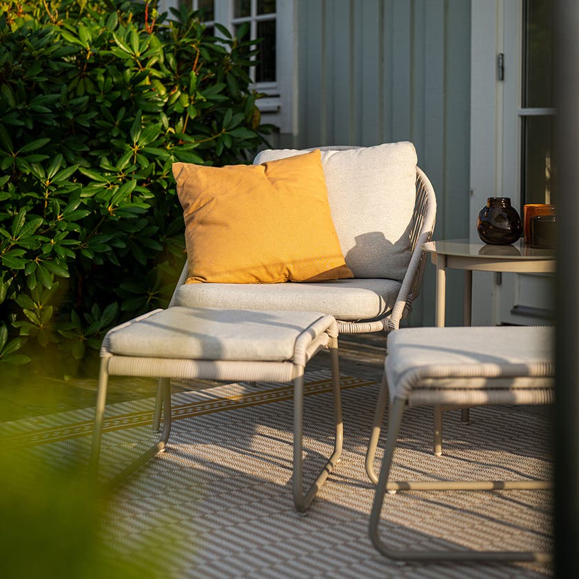 Njut sommarstunderna i loungegruppen Holmsund, ett mindre, nätt duo-set i modernt och sobert utförande. Gruppen passar lika bra på den mindre uteplatsen som på balkongen eller favorithörnan i trädgården.