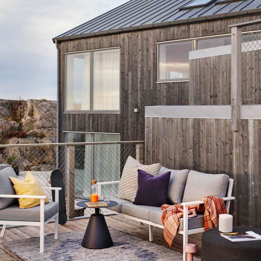 Karmstolarna har bekväma dynor i olefintyg med en vattenavvisande liner. De snygga armstöden är lätt rundade vilket ger en skön känsla i detaljerna. Den lite lägre höjden är perfekt både för avkoppling och fikastunder.