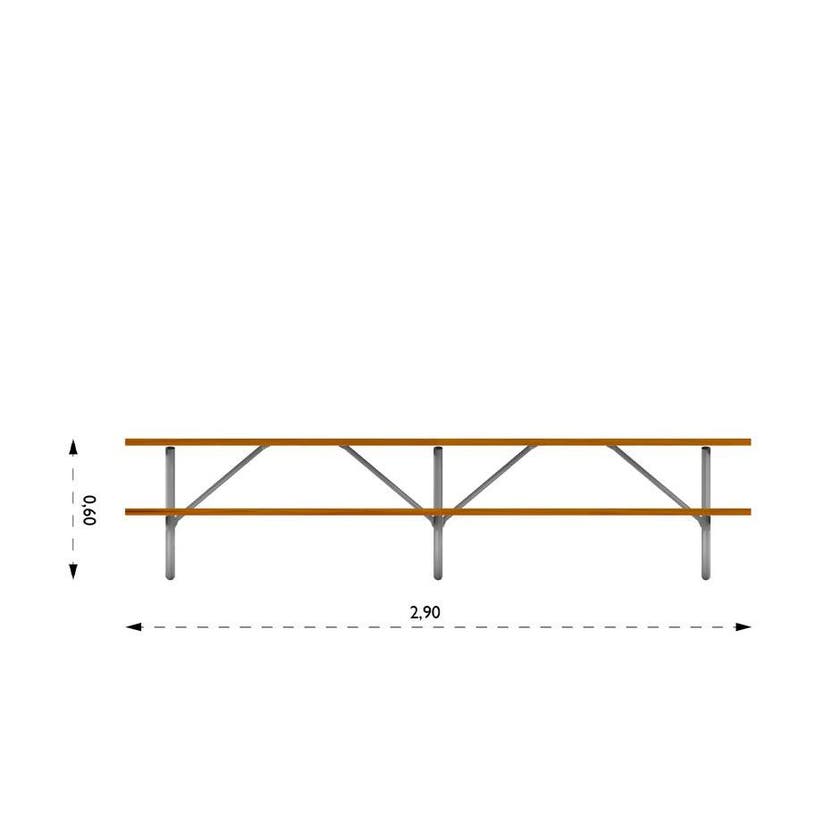 Picknickbord Kiev utan ryggstöd, L2900 x B1300 x H600 mm, sitthöjd 350 mm, barkbrun/galvaniserat stativ