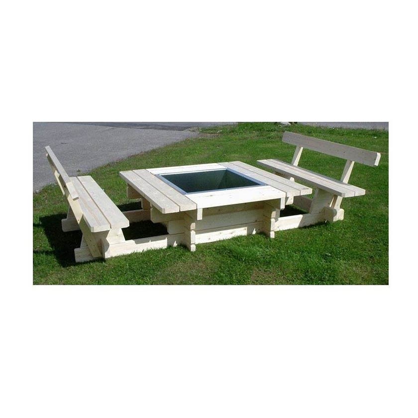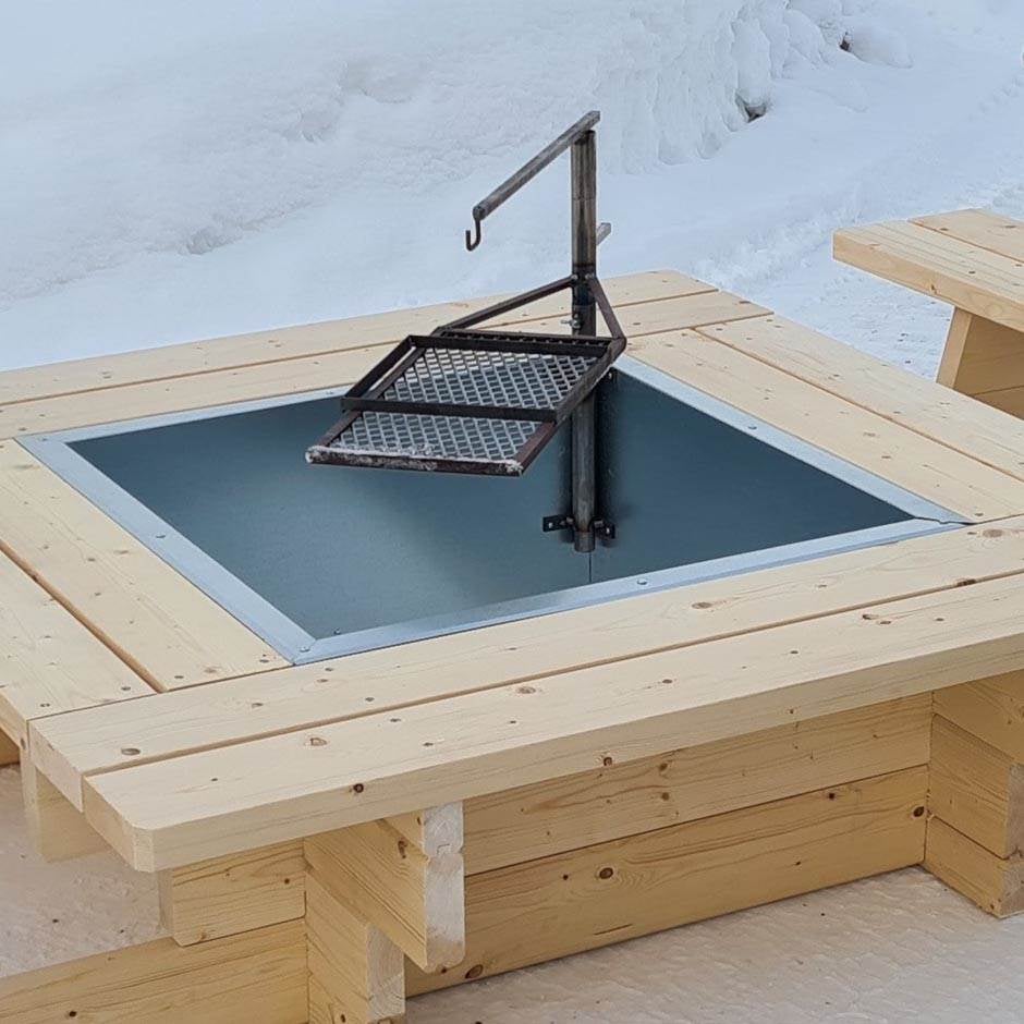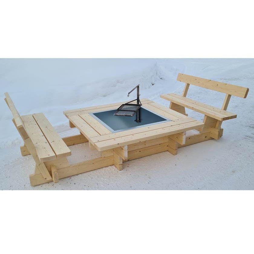 Grubban är en mycket rustik utemöbel med eldstad och fasta bänkar, tillverkade i rejält Norrlandstimmer. Fördelarna med denna utemöbel är många. Det robusta utförandet gör Grubban till en möbel som står stabilt, med minimal risk för att den blir flyttad. Eldstaden gör att man på ett tryggt sätt kan tillåta grillning på avsedd plats. I kombination med väl utvald placering så minimeras risken för spridning av eld genom eldstadens rejäla konstruktion. Utemöbel Grubban monteras ihop snabbt och enkelt, då endast ryggstöden behöver monteras.