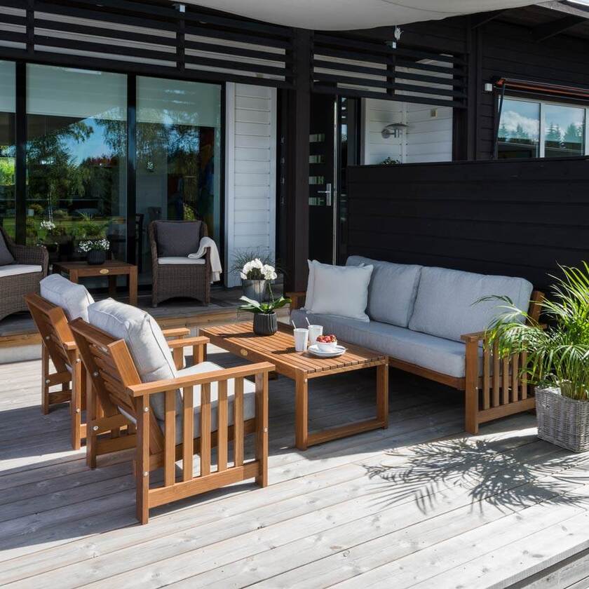 Tillverkad av värmebehandlad Ask som innebär att träet är uppvärmt till väldigt hög temperatur, vilket gör ytan enormt tålig för väder och vind..