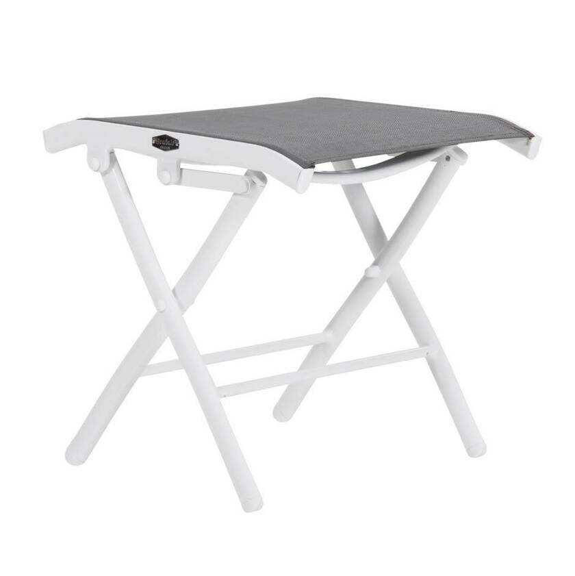 Fotpall Andy, L460 x B400 x H420 mm, hopfällbar, grå textilene och vit stomme