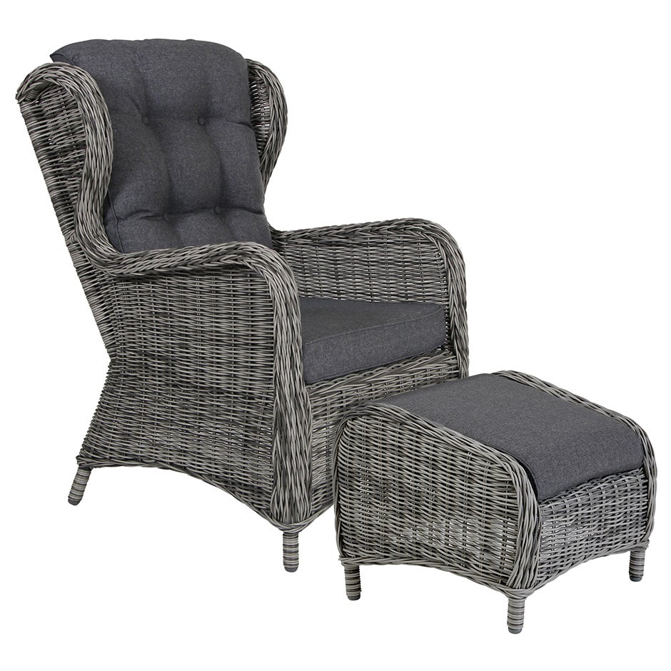 Fotpall i härliga utemöbelserien Rosita. Serien Rosita är en komplett samling utemöbler för härliga sommarstunder. Rosita utmärks av sina mjuka former och sin generösa sittkomfort. Välj mellan sköna fåtöljer som du kompletterar med fotpall, bord i olika storlekar och en soffa som det är skönt att krypa upp i. Stativ i konstrotting så naturtrogen att den lätt förväxlas med äkta vara - men det är ju knappast en nackdel.