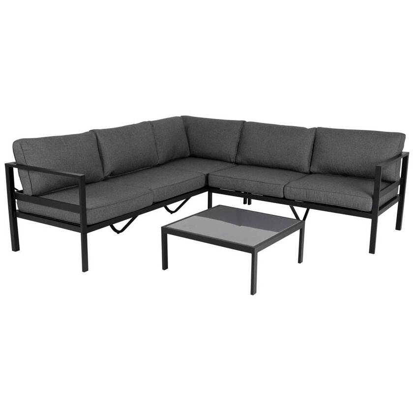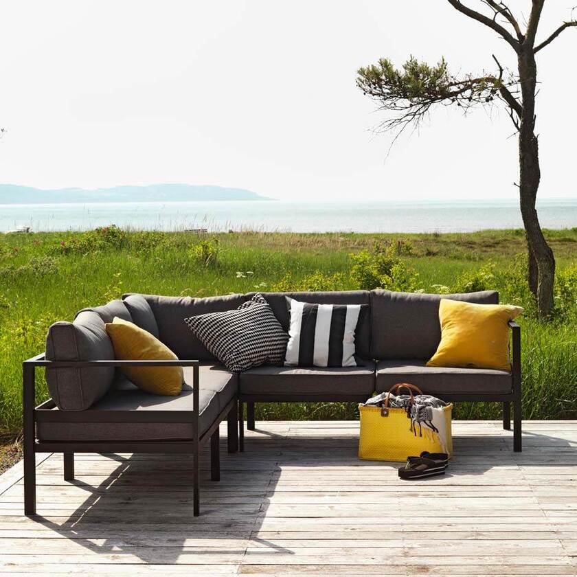 Loungesoffa Leone, hörndel / avslut. Levereras med dynor i grå polyester. Kan tillsammans med 63-1083 byggas ut i oändlighet efter behov. Svart stomme i aluminium. Stomme är valbar i vit eller svart.