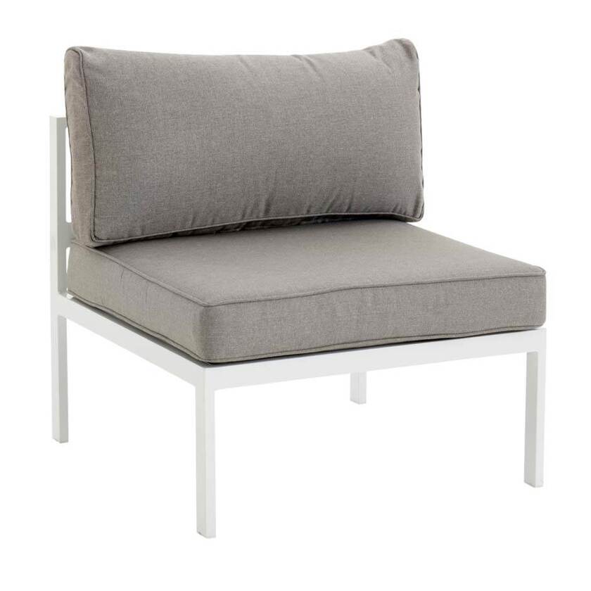 Loungesoffa Leone, mittdel. Levereras med dynor i grå polyester. Kan tillsammans med 63-1082 byggas ut i oändlighet efter behov. Svart eller vit stomme i aluminium.