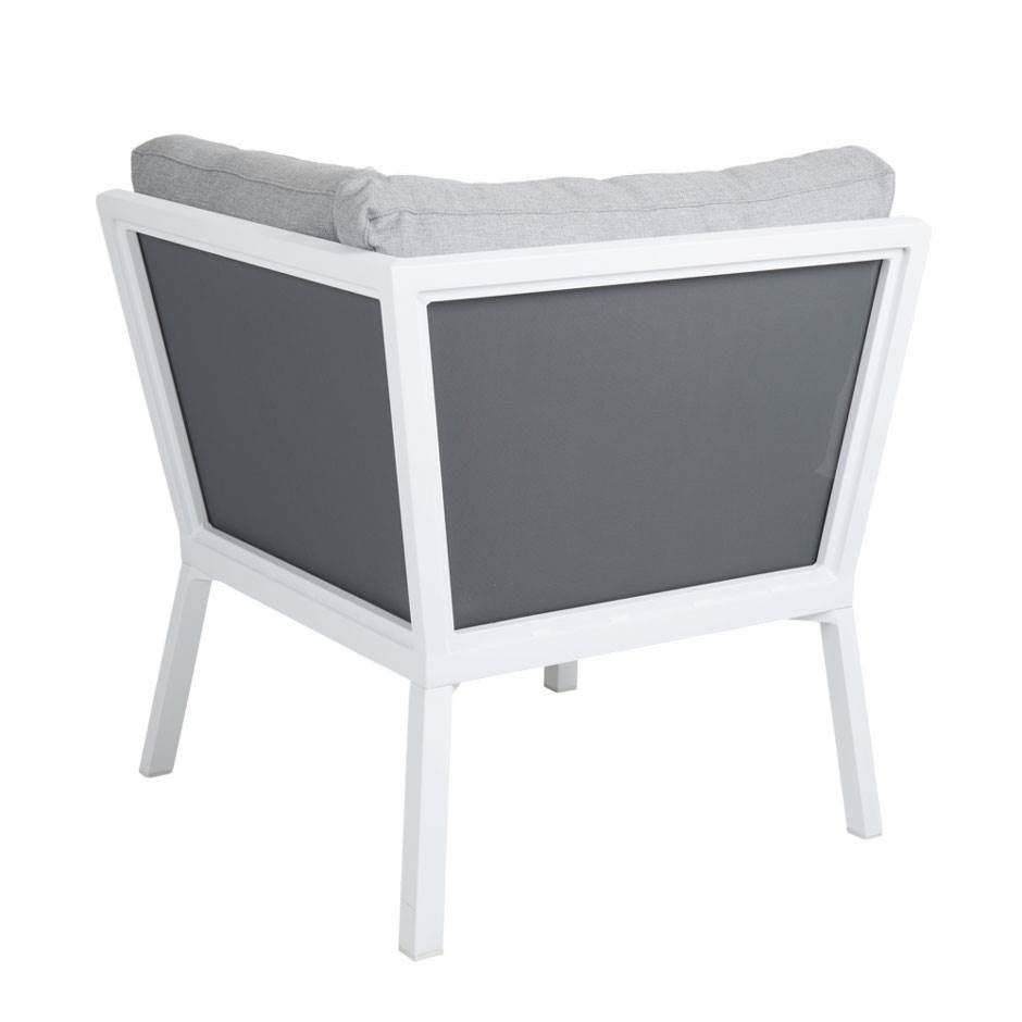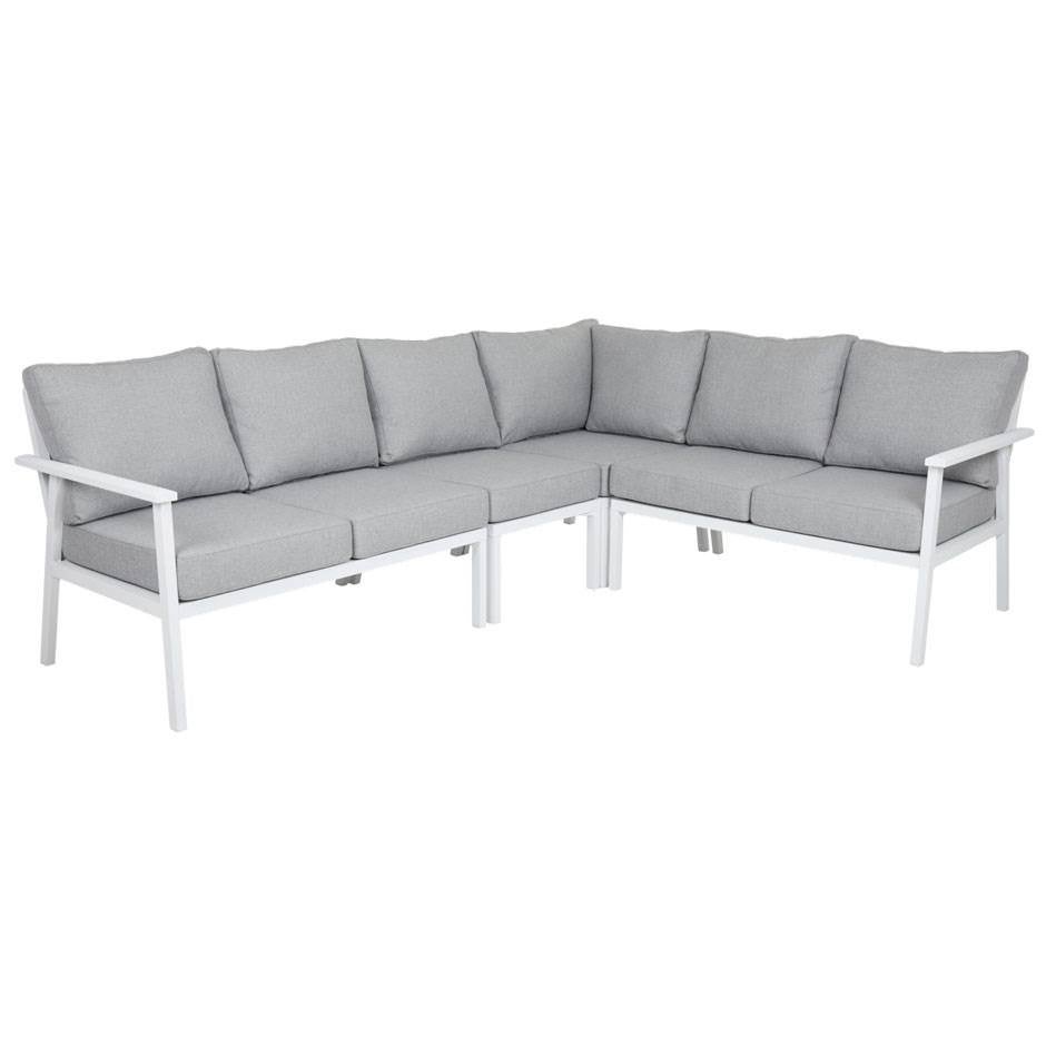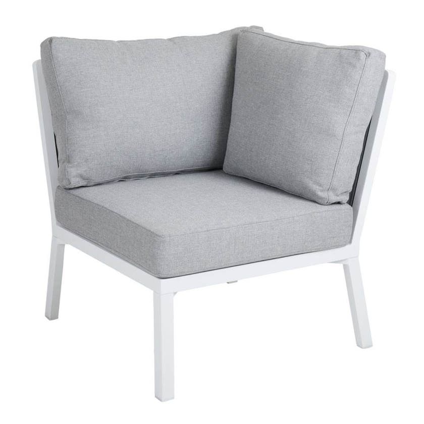 Loungesoffa Samvaro, hörndel, L790 x D790 x H940 mm, inkl. ljusgrå dynor, vit aluminiumstomme