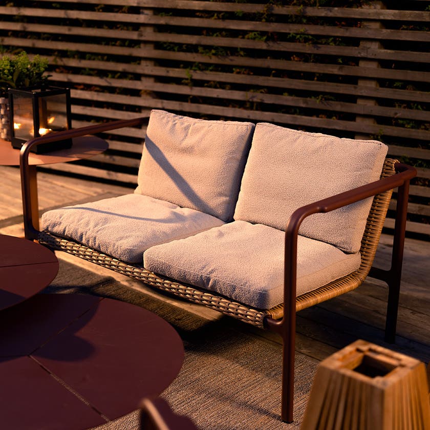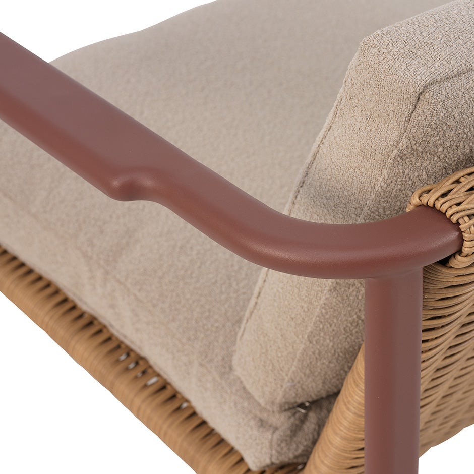 Med mjuka former och en naturligt inspirerad rottinglook ger Motty både komfort och stil. Den pulverlackerade stommen har mjuka övergångar vid fogar och armstöd, vilket förstärker det eleganta uttrycket. Härliga dynor i mjukt Teddy-tyg fulländar känslan och gör Motty lika inbjudande som bekväm.