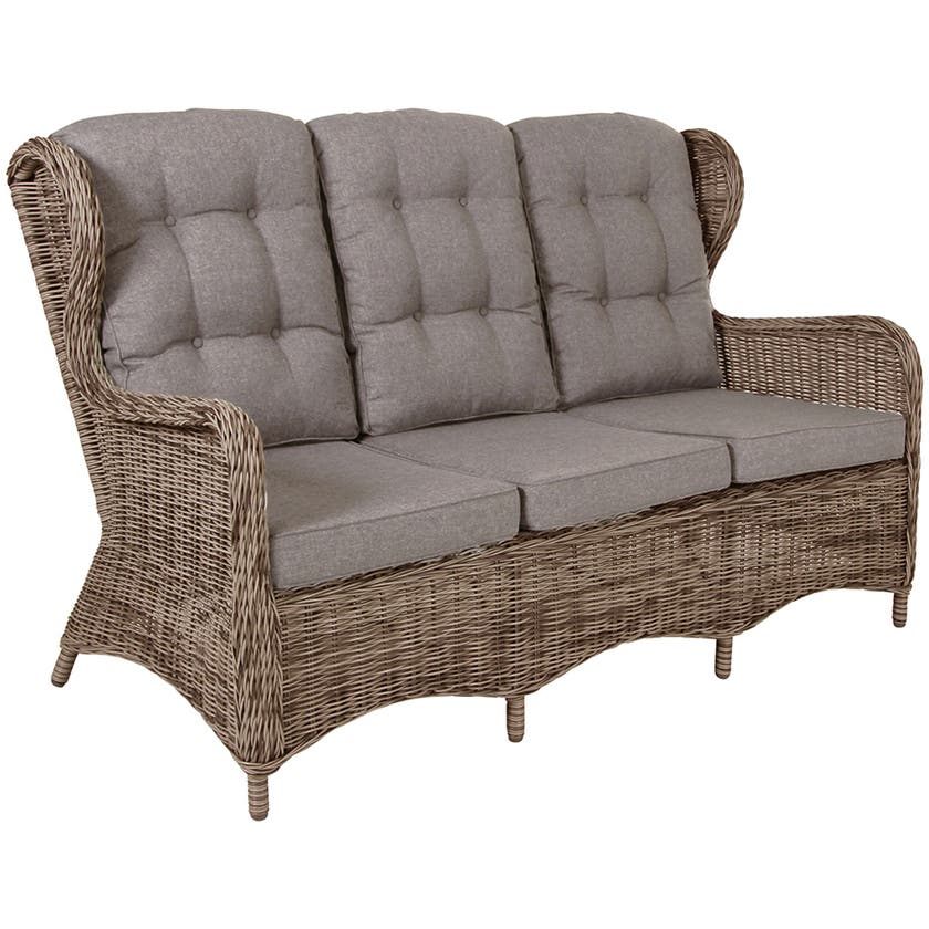 Skön 3-sitssoffa i härliga utemöbelserien Rosita. Serien Rosita är en komplett samling utemöbler för härliga sommarstunder. Rosita utmärks av sina mjuka former och sin generösa sittkomfort. Välj mellan sköna fåtöljer som du kompletterar med fotpall, bord i olika storlekar och en soffa som det är skönt att krypa upp i. Stativ i konstrotting så naturtrogen att den lätt förväxlas med äkta vara - men det är ju knappast en nackdel.