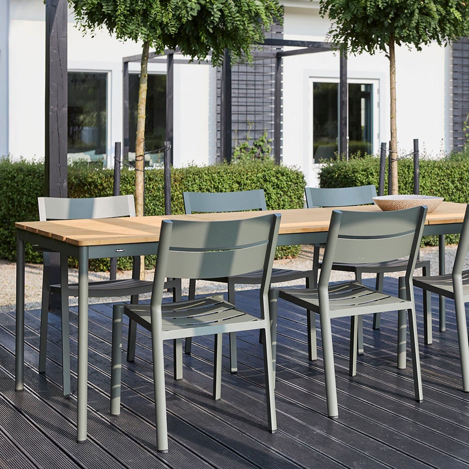 Skandinavisk design när den är som bäst. Delia är en modern och stilren utemöbel med självklara linjer som accentueras av kurvade former för att maximera komforten. Linjerna i benen möts av sittdelen som har en elegant S-form och lutning. Bekvämt, snyggt och tåligt!