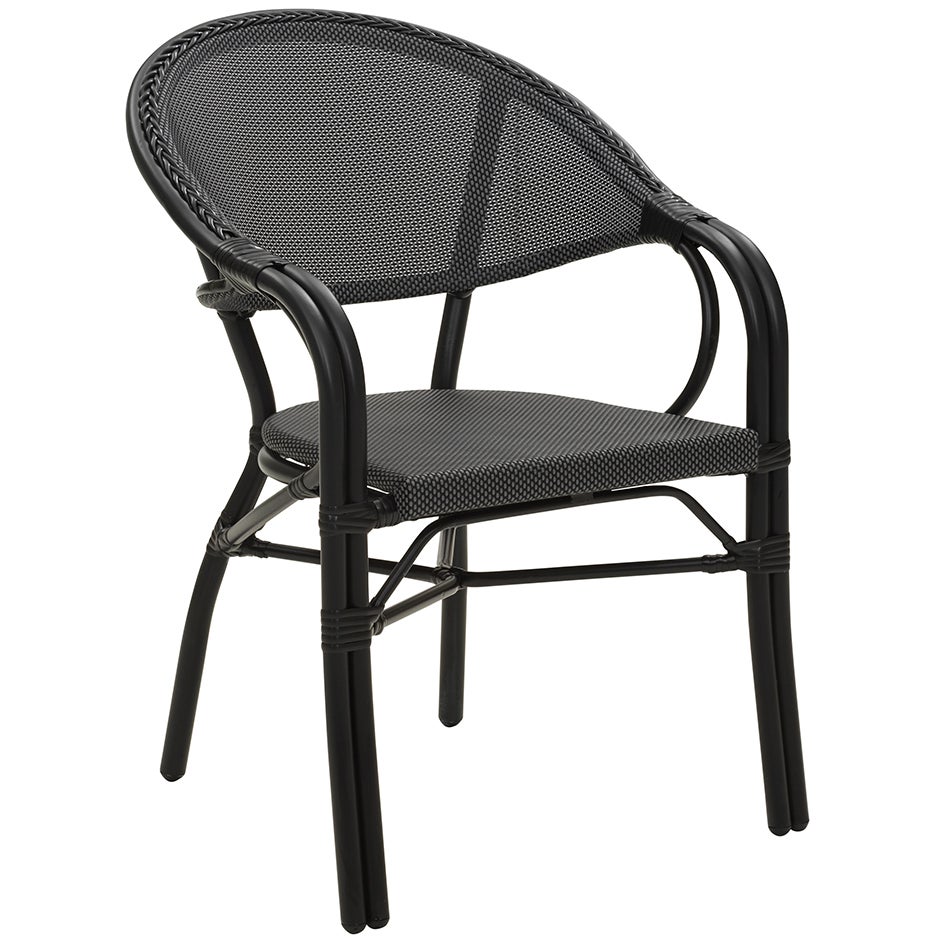Parterre är en skön stol i härlig bistrostil. Kombinationen aluminium och textilene gör stolen lätt, tålig och bekväm. Stapelbar för smidig förvaring.